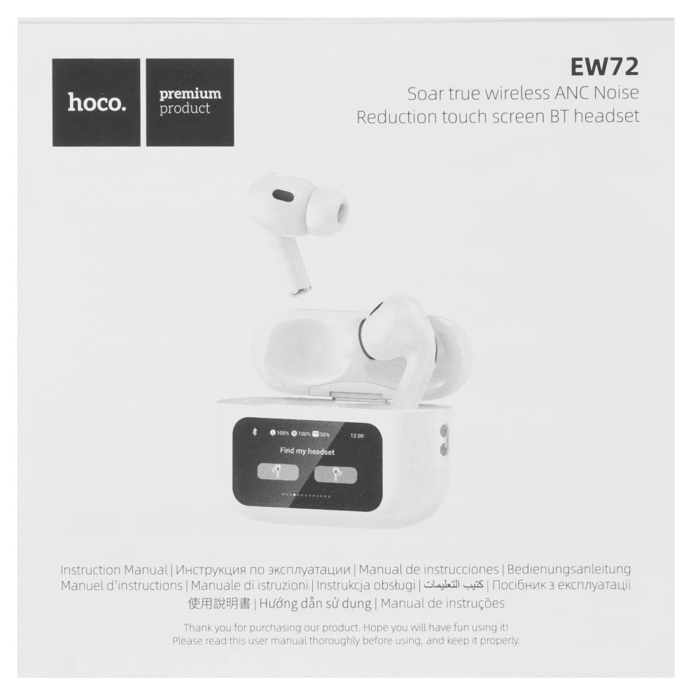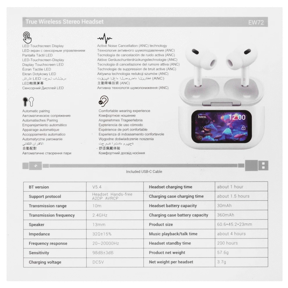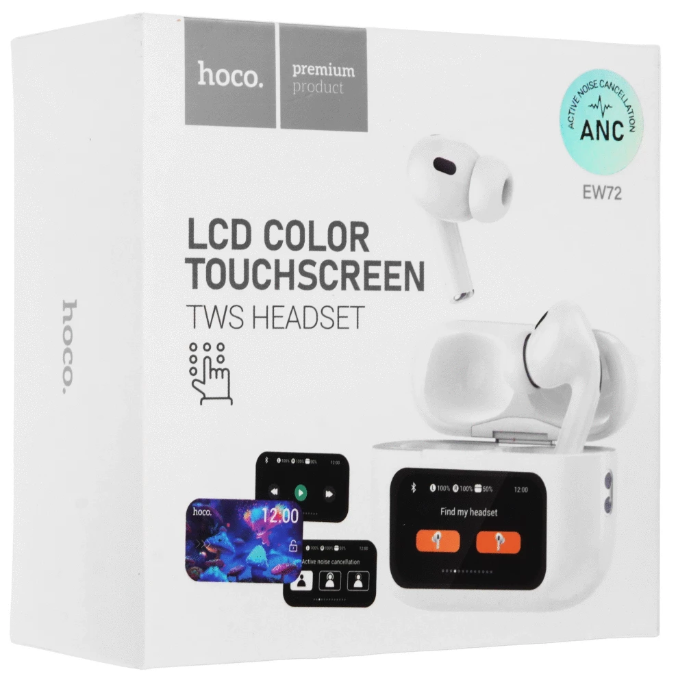Беспроводные наушники Hoco EW72, белые, сенсорный дисплей